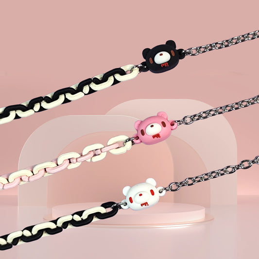 Set of three bracelets with cute bear charms in black, pink and white. Color - contrasting chains make them trendy and charming.