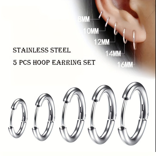 5pcs Stainless Steel Earrings Round Wire Earrings Hooks Loop Drop Dangles Set, Huggie Hoop Earring Hooks For Men