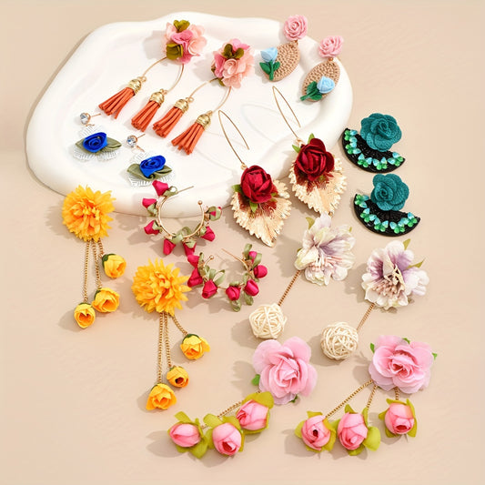 [Popular Choice] Colorful Bohemian Tassel Fabric Flower Earrings - Vibrant Polyester Dangle Earrings with Stainless Steel Hooks for Daily & Party Wear, All-Season Boho Chic Style