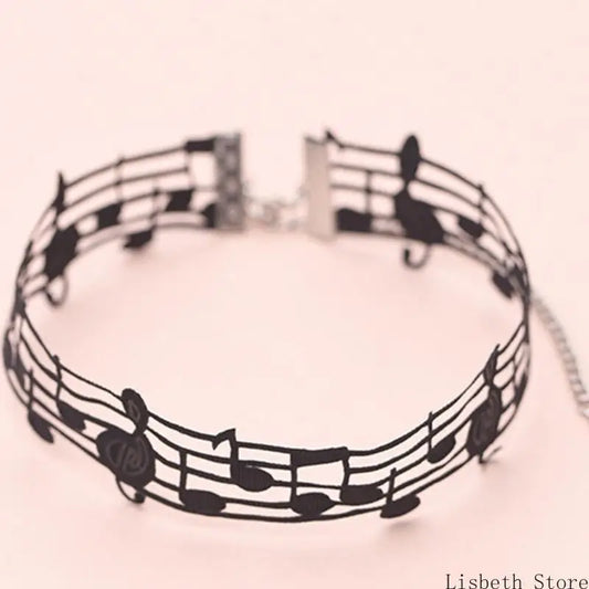 Elegant Black Alloy and Ribbon Necklace with Distinctive Note Distinctive Fashion Jewelry Perfect for Party and Concerts