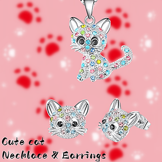 [Cat Jewelry Set] Cat Necklace and Cat Earrings Set | Little Girls Jewelry for Cat Lover Daughter Granddaughter, Teenager Cat Gifts for Girls