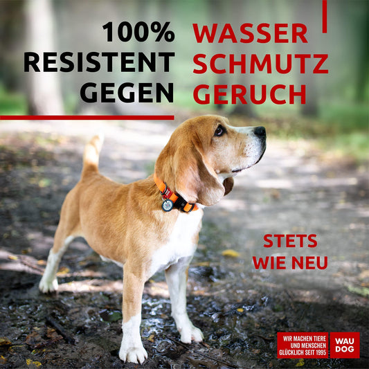 Wasserdichtes Hundehalsband, verstellbar, 25,4–40,6 cm Hals, Metallschnalle, orangefarbenes Hundehalsband