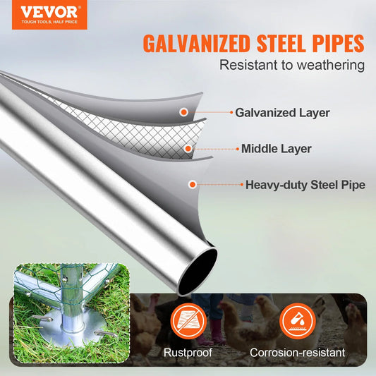 VEVOR Chicken Coop, 9.8X6.5X6.5Ft Walk-In Large Metal Chicken Run for Yard with Waterproof Cover, Doom Roof Hen House with Security Lock for Outdoor and Backyard, Farm, Duck Rabbit Cage Poultry Pen