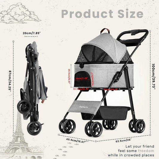 Pet Stroller for Dogs and Cats,Portable Pet Pram, Lightweight Folding Design with Safety Harness and Mesh Ventilation