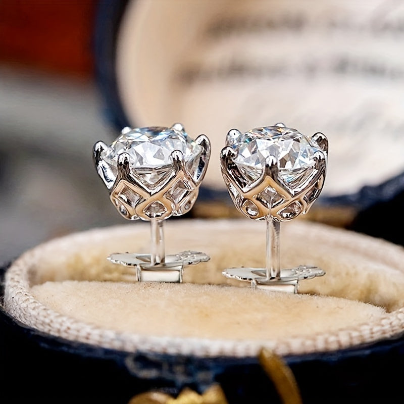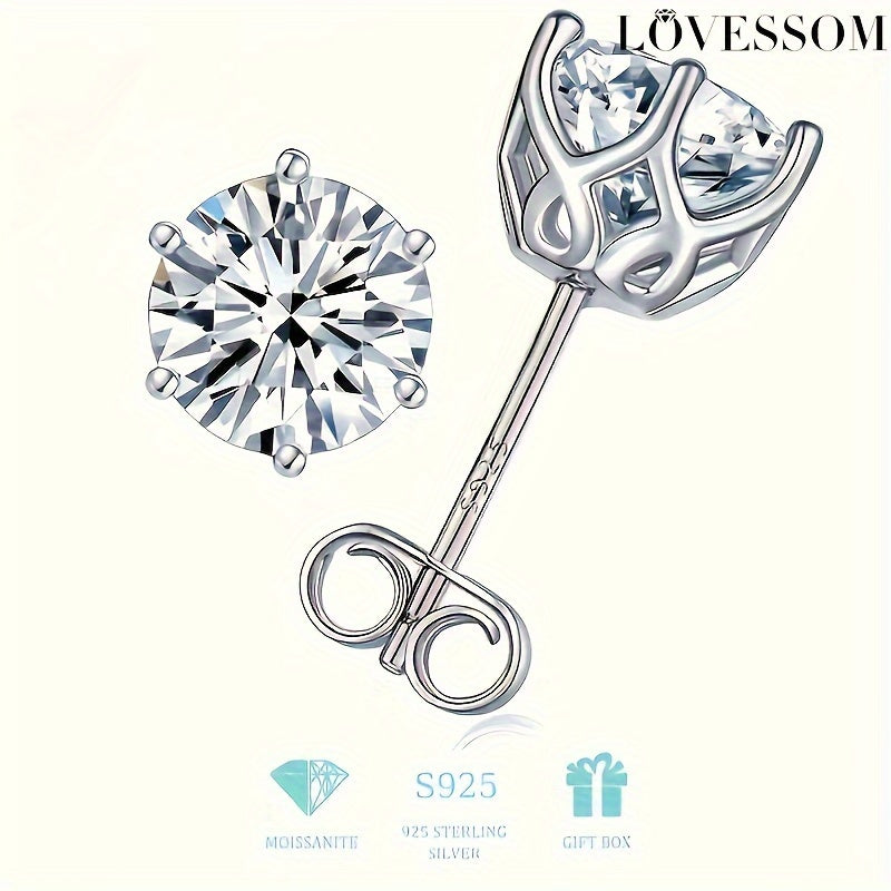 1 Pair 925 Pure Silver Mozambique Hip-hop Rock Earrings for Men's and Women's Couple, Sister, Wedding, Birthday, Anniversary, New Year's Gift