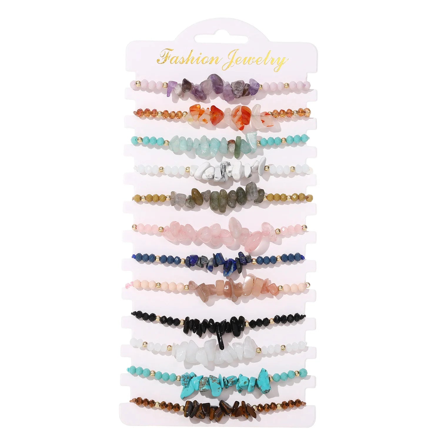 12 Pieces Of Colorful Crushed Stone Woven Bracelets are Fashionable and Suitable For Daily Wear By Men and Women