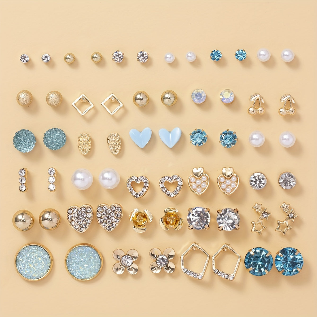 30 Pairs Assorted Multiple Stud Earrings Set For Women Heart Cherry Alloy Simple Earrings