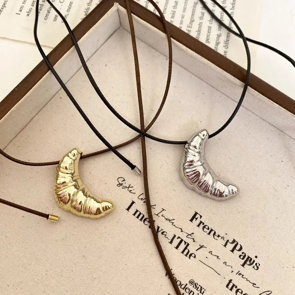 Croissant Pendant Necklace Bread Minority Design Rope Chain Necklace Charms Handmade Long Sweater Chain Decoration