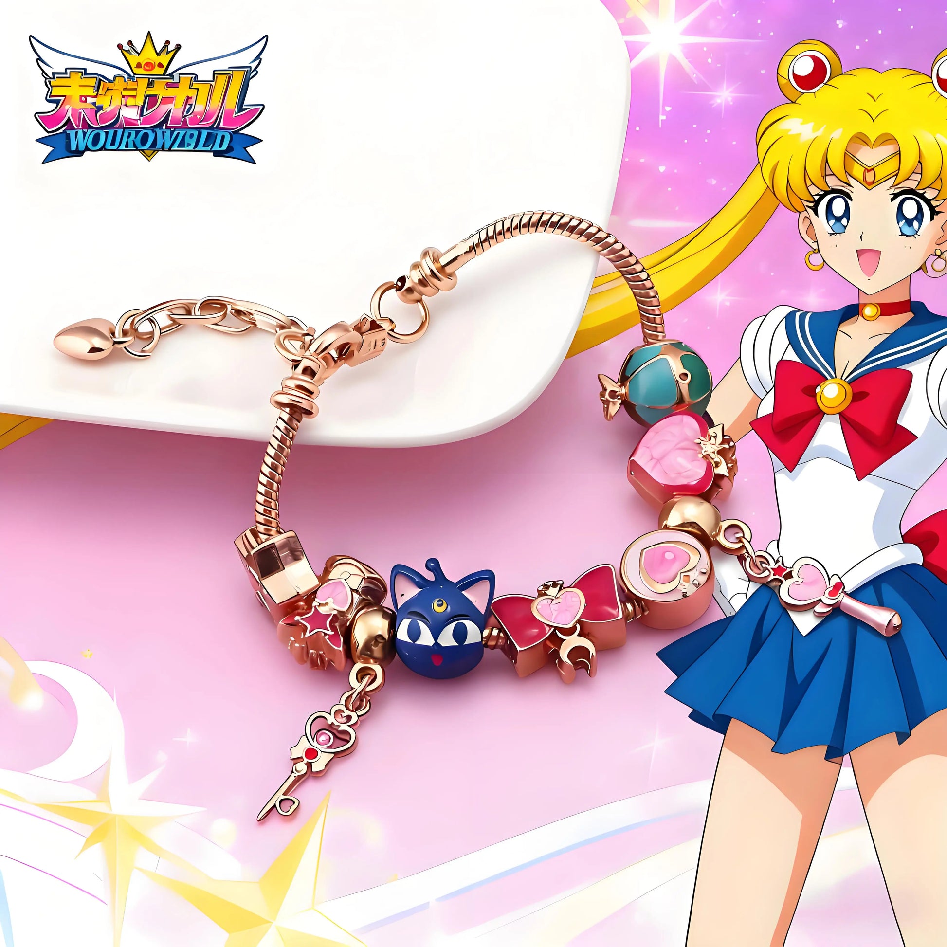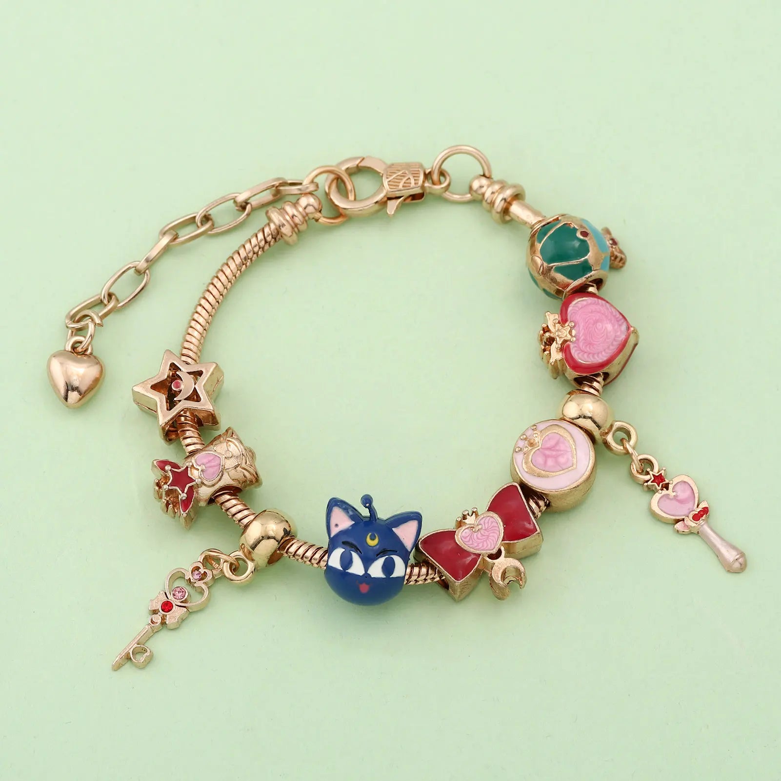 Cute Bracelet for Women - Gold Enamel Heart and Star Bow Bracelet Cute Everyday Wear Jewelry Cosplay Party Favor