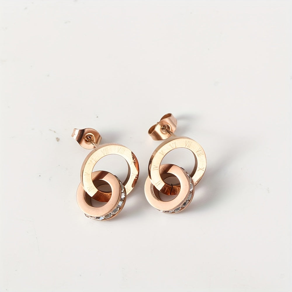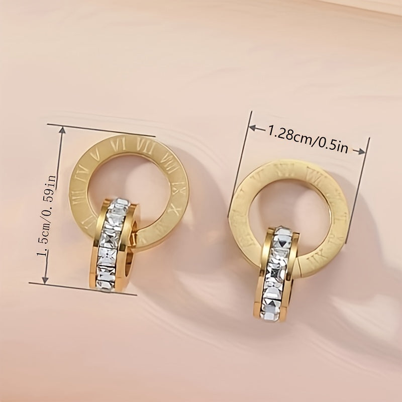 Elegantes Aretes de Acero Titanio con Circonitas Brillantes y Números Romanos - Hipoalergénicos, Perfectos para Cualquier Ocasión, Ideal Regalo para Ella