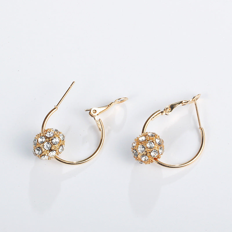 Full Colorful Shiny Rhinestone Decor Ball Design Hoop Earrings Bohemian Sexy Style Zinc Alloy Jewelry Daily Casual