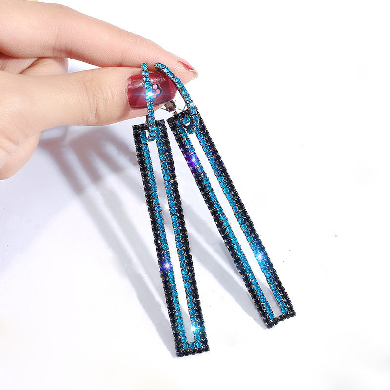 Luxurious Rhinestone Drop Earrings - Rectangular, Sparkling Dangle Design with Golden Tone, Stainless Steel Hooks for Women, Ideal for Date Nights and Formal Events, Formal Event Earrings | Sparkling Dangle Earrings | Rhinest
