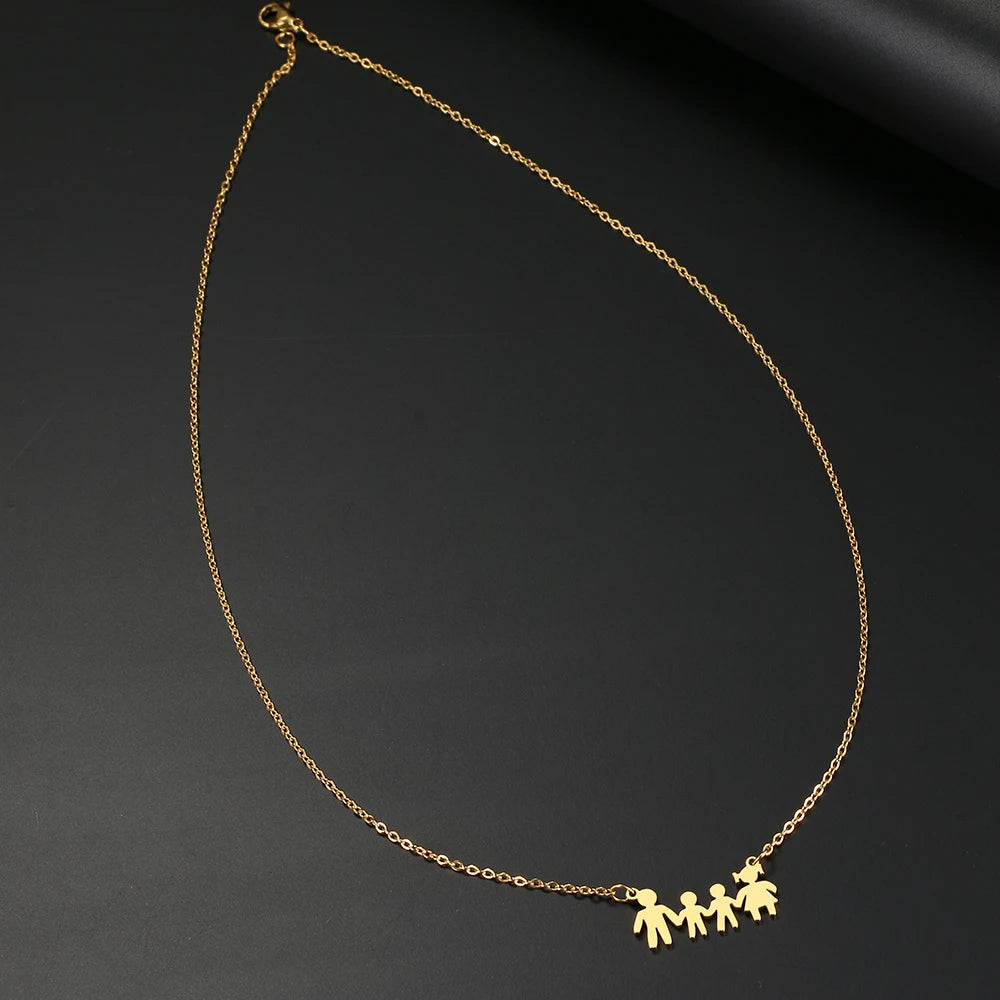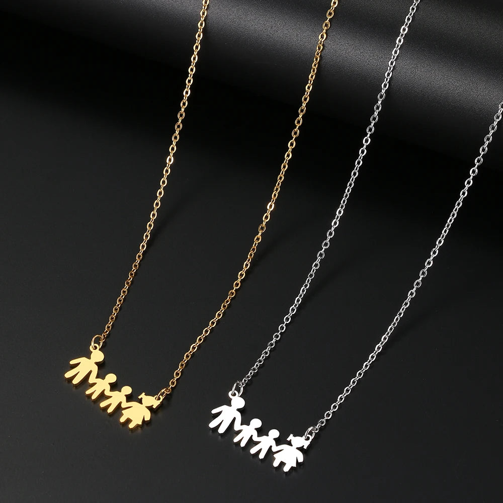 Stainless Steel Necklaces A Family Of Four People Pendant Choker Clavicle Chain Fashion Necklaces For Women Jewelry Mama's Gifts