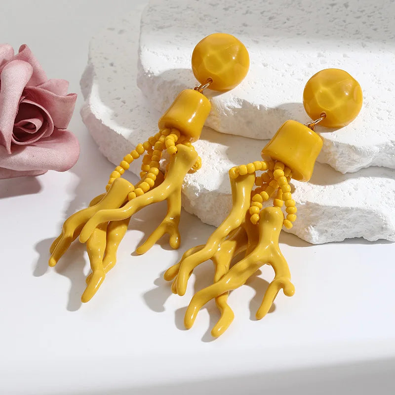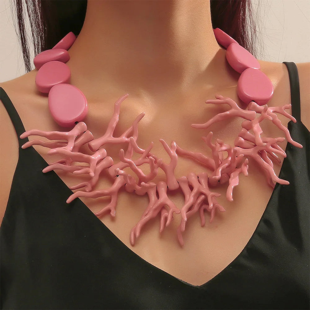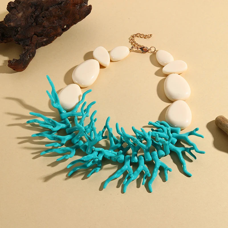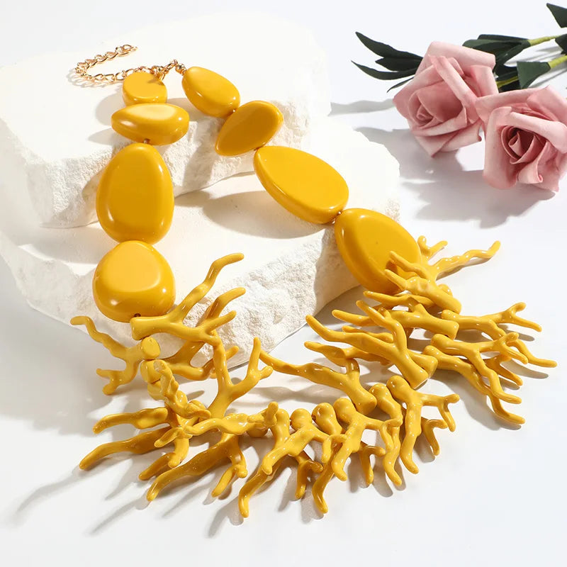 Trendy Choker Beaded Chain Bohemian Necklaces&Earrings Set for Women Big Beads Coralline Pendant Necklace Bib Set Jewelry Gifts